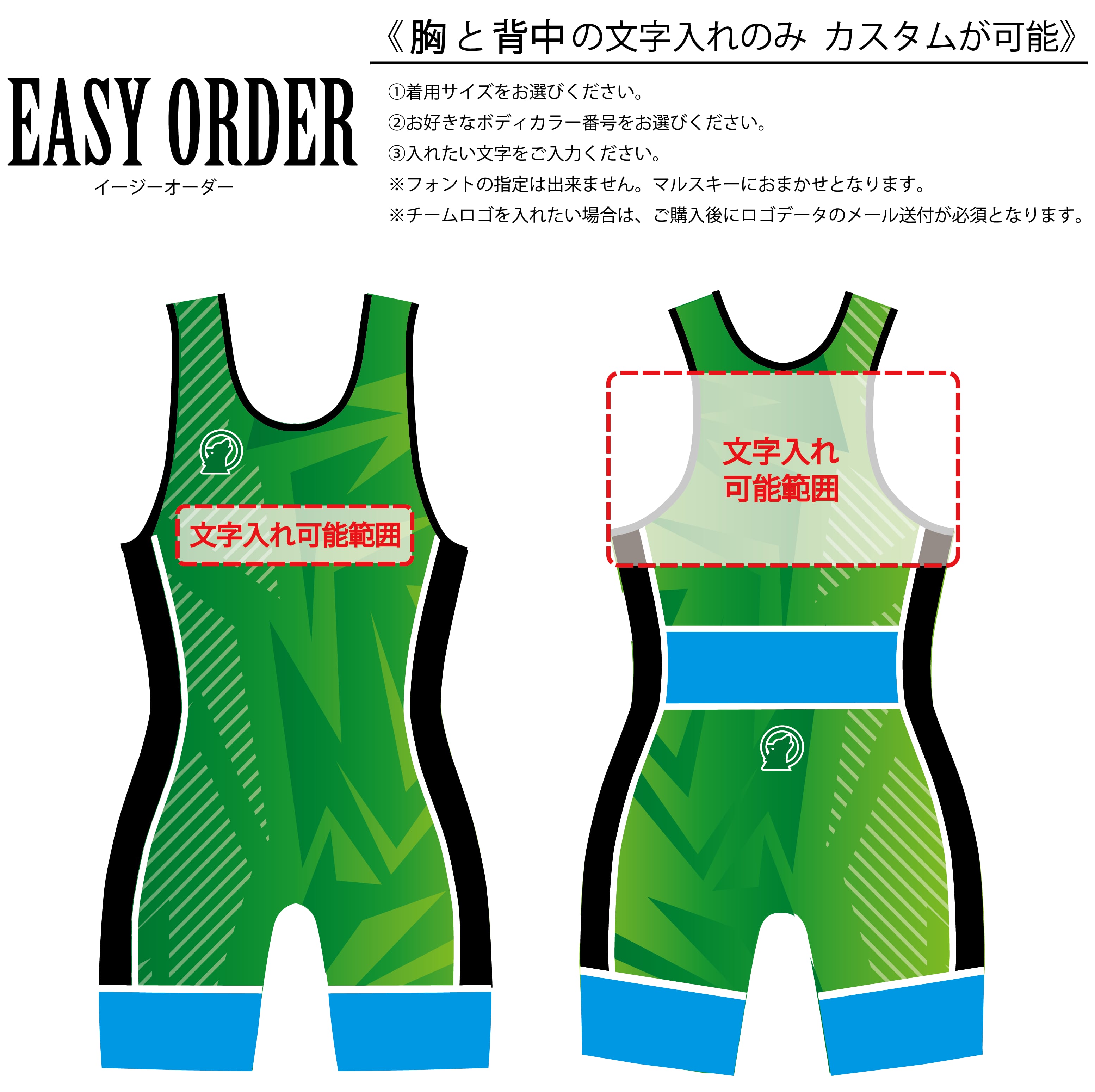・イージーオーダーでは文字入れ以外のデザイン指定はできません。『フルオーダー シングレット』では同じ料金で自由にカスタムが可能ですので、ご検討ください。