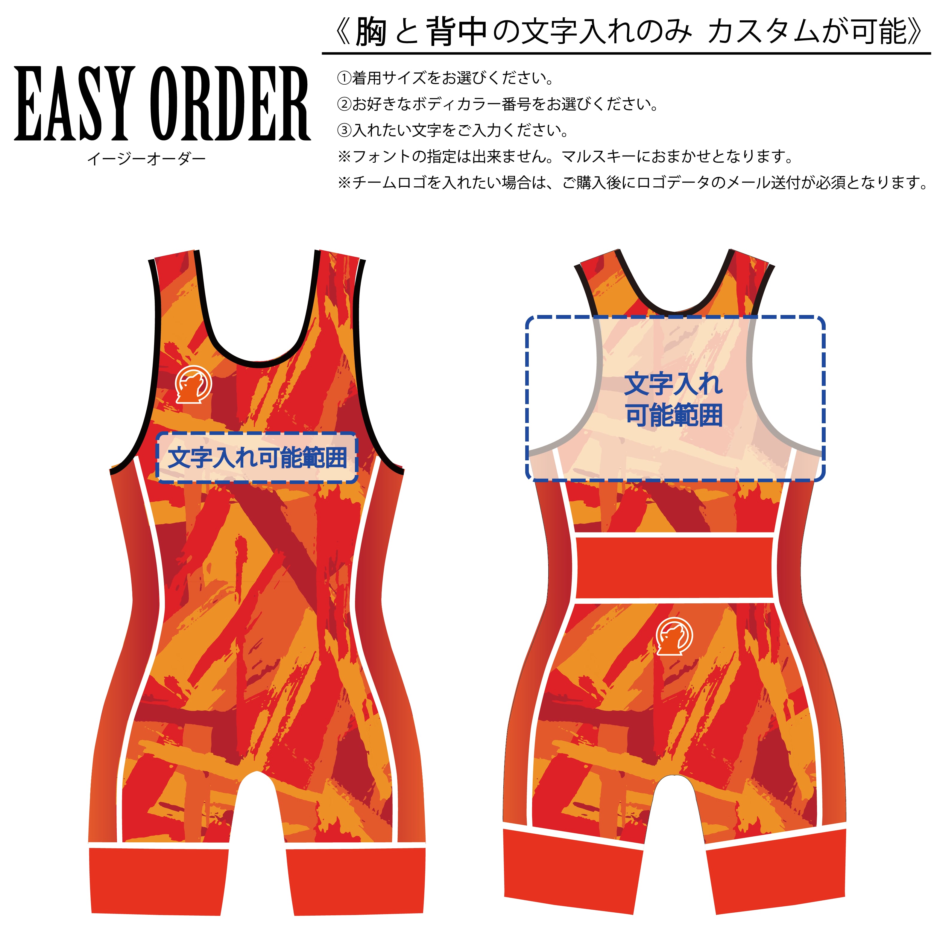 ・イージーオーダーでは文字入れ以外のデザイン指定はできません。『フルオーダー シングレット』では同じ料金で自由にカスタムが可能ですので、ご検討ください。