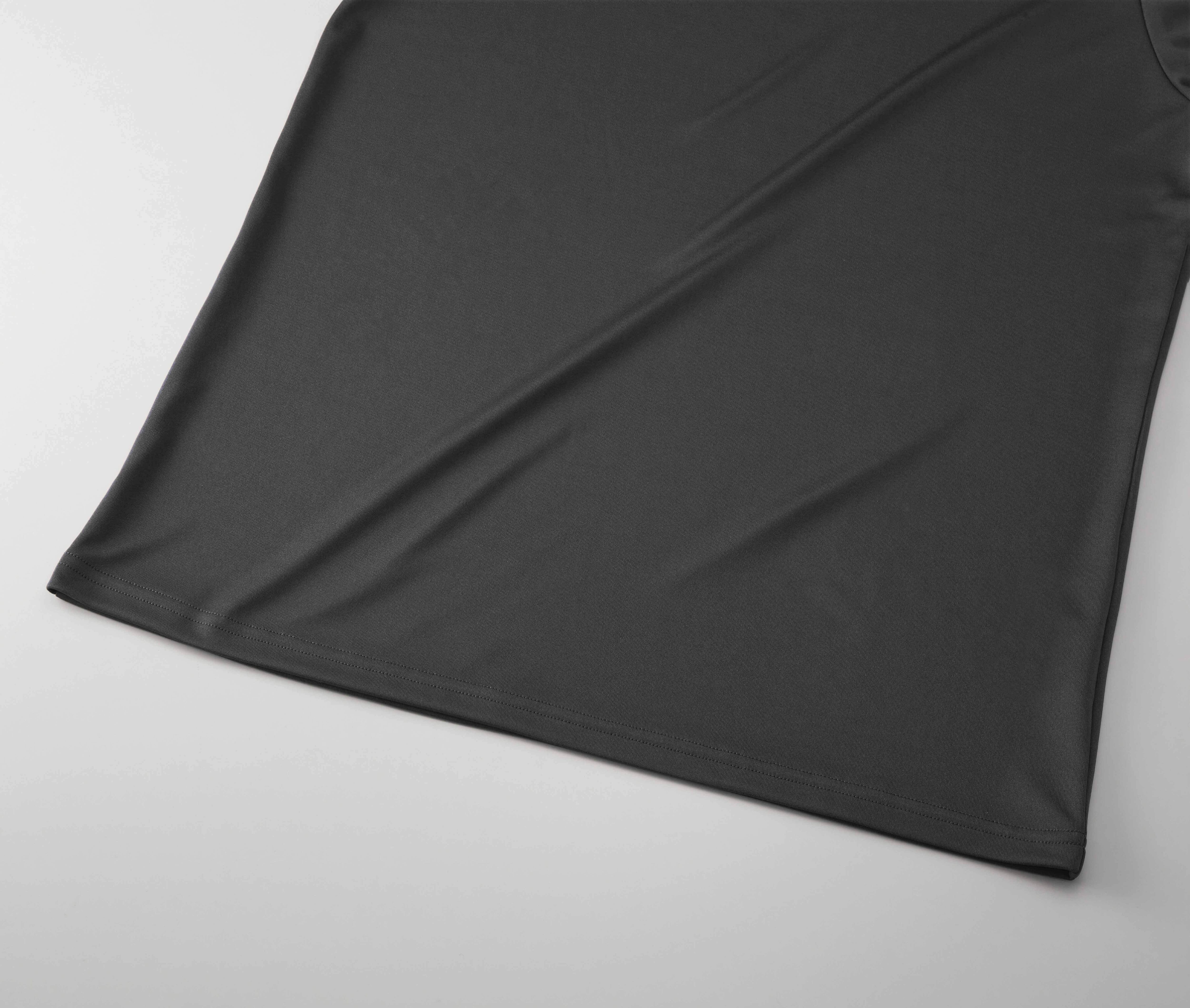 セミダル糸を使用することで、テカリが抑えられた自然な光沢感を実現。一般的なポリステルメッシュ生地のドライTシャツと比較して、透け感も軽減。